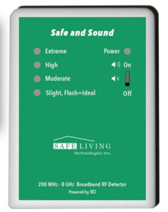 Revolutionary RF Detector with true response up to 8 GHz! I use this every day on the dashboard of my car as I drive. Unlike any other detector in its price range. The Safe and Sound RF Detector is a compact, simple to use detector for Radio Frequency / Microwave Radiation (200 MHz to 8Ghz). Engineered and designed by the RF Engineers of Safe Living Technologies. Manufactured in Canada and circuit board made in Silicon Valley, USA. Provides a quick and simple assessment of the RF present in your environment and requires no technical experience. It uses color coded LED’s which correlate to measurement ranges to assess the RF exposure in your environment. The Safe and Sound also has a sound signature analysis which helps identify which RF Sources you are being exposed to.